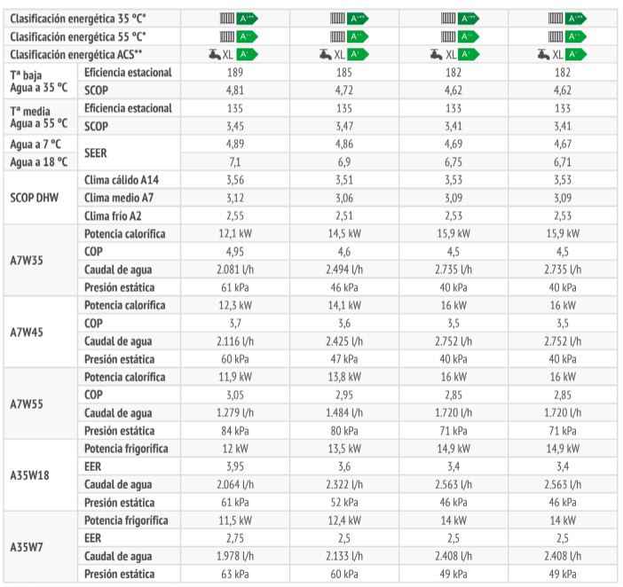 La conectividad WIFI permite el control remoto a través de una aplicación disponible para Android e iOS. También cuenta con entrada fotovoltaica y entrada de red inteligente (Smart Grid Ready), protección antihielo y garantía de funcionamiento hasta -20ºC de temperatura exterior. El diseño facilita el mantenimiento con acceso frontal, y la batería exterior tiene tratamiento anticorrosión con aletas de aluminio hidrofílico.