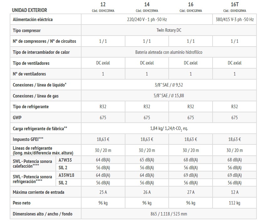 - Batería exterior con tratamiento anticorrosión (aletas de aluminio hidrofílico).