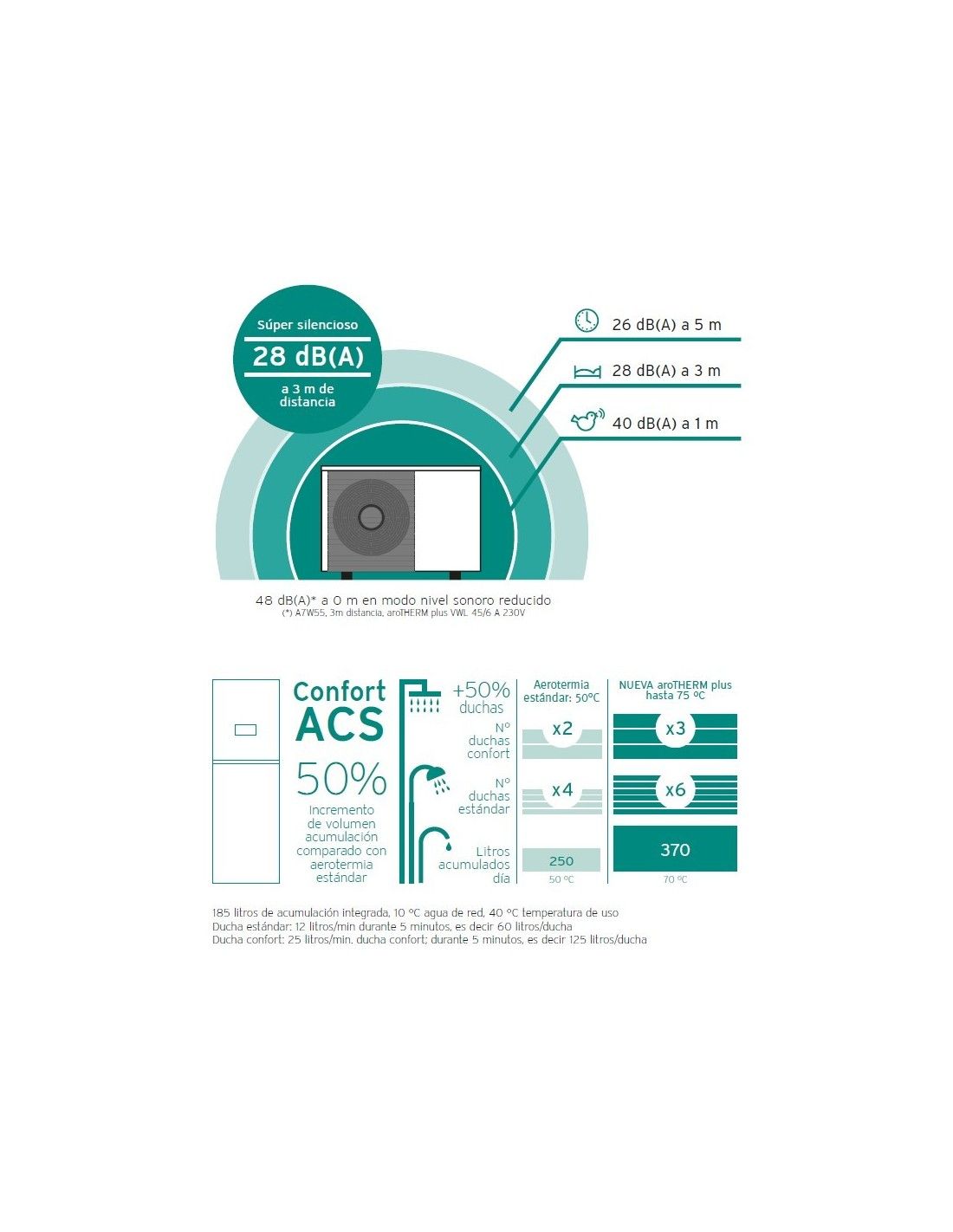 Acumulador integrado de 185 litros.