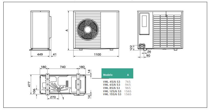 Aerotermia para agua caliente, calefacción y posibilidad de ampliar con aire acondicionado. Refrigetante R290