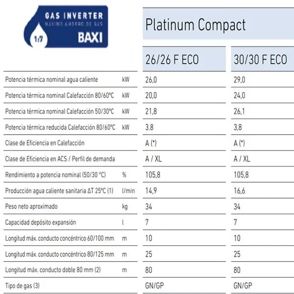 Características de Caldera Baxi Platinum Compac Eco 26/26f