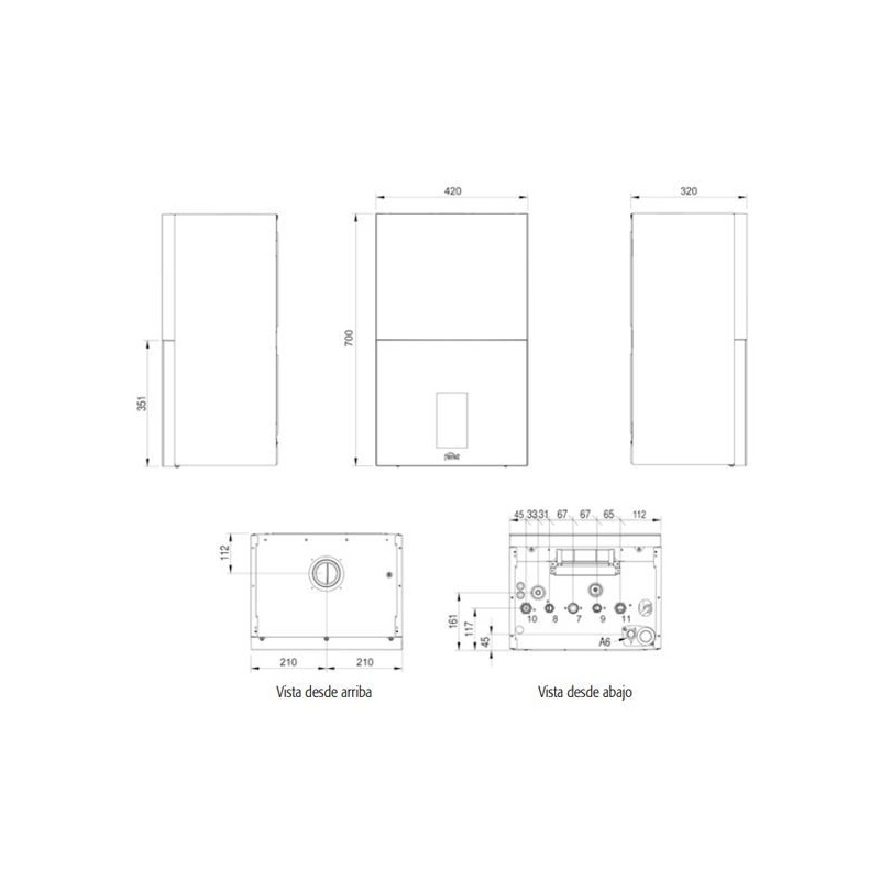 - Capacidad del vaso de expansión de calefacción: 10 litros.