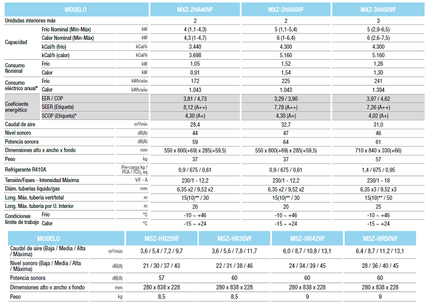 Características Aire Acondicionado Multisplit Mitsubishi Electric 3×1 MSZ-HR252525VF Ext. MXZ-3HA50VFF :